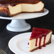 Over the years I’ve gotten quite a few questions from you guys about cheesecake, and I can understand why there’s confusion. Cheesecake is such a ubiquitous dessert, you can find it at most restaurants and bake shops. Yet there’s about ten trillion ways to make it. I usually like to make cheesecake bars because it takes out a lot of the guess work and is just quicker and easier, but there’s nothing quite as impressive as a towering cheesecake. Especially when there’s no cracks! But how do you accomplish that? Do you use a water bath? What’s a springform pan? Do you bake at a super low temperature? Do you turn the oven off and let the cheesecake cool inside the oven? When is a cheesecake done baking? These are all questions I’ve asked and experimented with different recipes and techniques to find the answers.