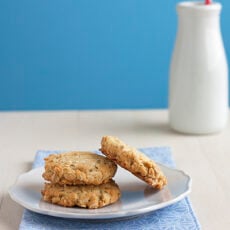 Happy Australia Day! Well, technically if you’re in the U.S. like me it’s tomorrow. In case you didn’t know, my mom grew up in Australia and I have family over there. I also lived there for a year when I was a little girl. ANZAC biscuits (we’d call them cookies here in the U.S.) are quite iconic. ANZAC stands for Australian New Zealand Army Corps. The story behind them revolves around World War I. Apparently soldiers received ANZAC biscuits from their wives because they don’t spoil quickly and they travel well. They also don’t have any eggs as those were scarce at the time.