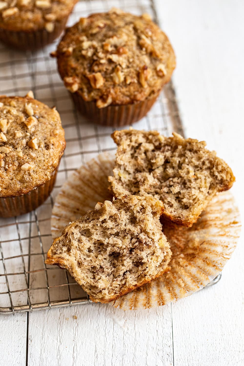 These are the BEST easy Banana Nut Muffins that the whole family will love! This recipe features super fluffy and moist banana muffins with crunchy walnuts or pecans studded throughout. You’ll love the crunchy topping of coarse sugar and extra nuts on top.