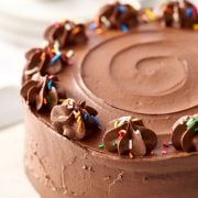 There are a few products + tricks that make cake decorating a breeze. Luckily, this recipe is particularly easy to assemble and decorate. The cake layers are sturdy and the frosting is so velvety smooth that it’s perfect for beginners.