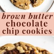 This is optional, but you can add a sprinkling of flaky finishing sea salt to the cookies right after pulling them out of the oven. I love the salty-sweet combination, and I think it really adds something special to these Brown Butter Chocolate Chip Cookies.