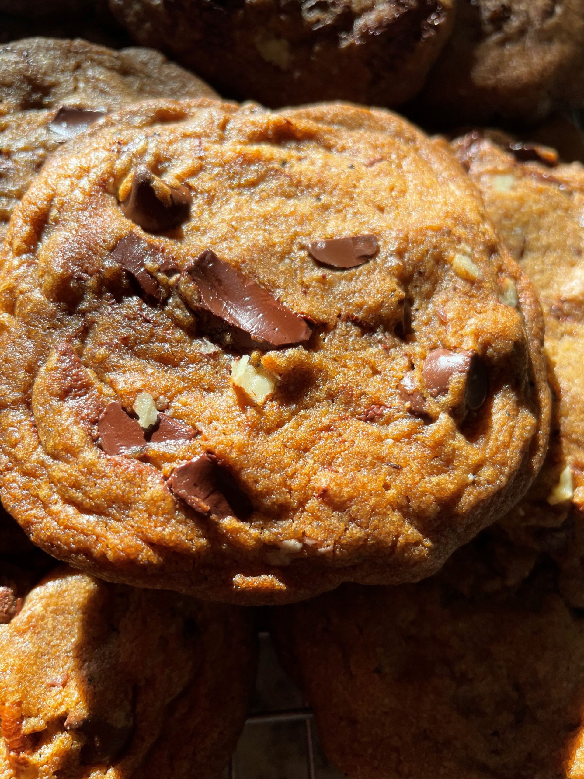 I found this on Reddit when I was searching for people’s favourite choc chip cookie recipes. When I tell you I’ve tried 3 dozen recipes and this one is heads and shoulders above the rest… The bread flour is crucial. The brown butter is crucial. The 24+ hour chilling period is crucial. The final sprinkle of flaky sea salt is crucial. All the extra effort is worth it for the end result. People have asked to order big batches of these cookies from me when I bring them to parties, potlucks, etc. I play around with the chocolate additions, like adding white chocolate chips and walnuts, and sometimes I add a pinch of nutmeg. I also make mine huge and keep them in the freezer so I can pop 1-2 into the oven as an after-dinner dessert with vanilla ice cream. This recipe is proof that you don’t need fancy tools, just patience. Thank you so much for sharing this!