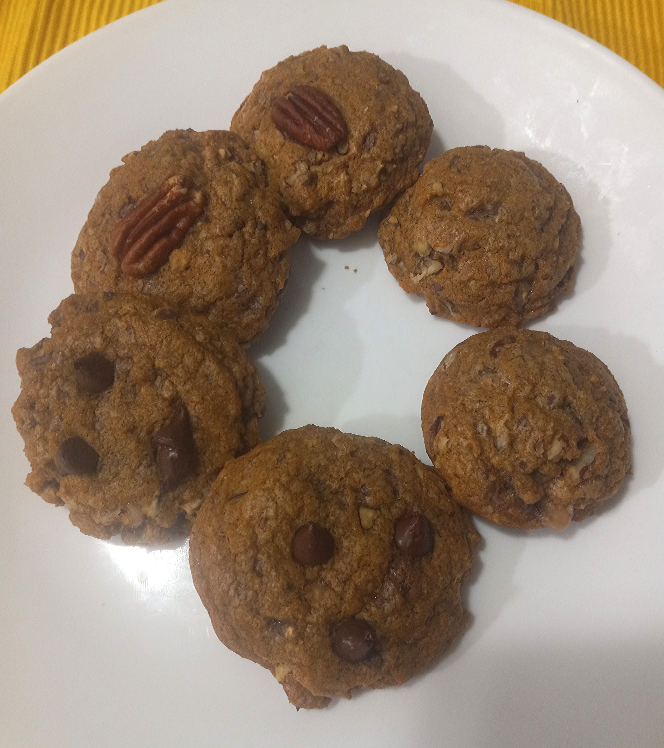 Easy recipe and good for fall. I do prefer normal chocolate chip cookies but a good alternative for this time of year.