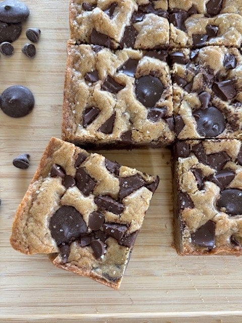Baking Powder: Just a touch of baking powder gives a little bit of lift so these blondies stay fudgy, not cakey nor dense, gummy, or gooey.
