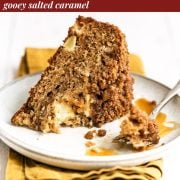 Texture: The cake is ultra tender and moist which is perfectly balanced by the slightly crunchy streusel and gooey caramel sauce.