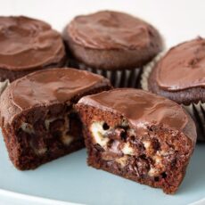 Ease: Even though you have to make a filling and dirty up a few more dishes, it’s all offset by the fact that the cupcakes are sprinkled with chocolate chips out of the oven to make a melted chocolate frosting. SO it ends up being the same amount of effort as normal cupcakes.