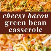 Cheesy Green Bean Casserole with Bacon is bursting with so many mouthwatering savory flavors, you'll never want to make regular green bean casserole again. Best of all, there's no canned condensed soup!