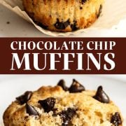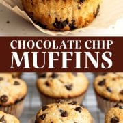 Store Chocolate Chip Muffins in an airtight at room temperature for 3 days. Reheat in the microwave for about 15 seconds if desired to get the chocolate chips nice and gooey. Muffins can also be frozen in an airtight container for up to 3 months. Defrost on the counter or in the microwave before serving.