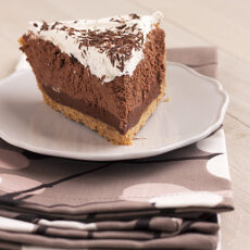 Chocolate Truffle Pie makes you smile with every bite. Buttery crust, a rich and fudge-like filling, a whipped chocolate cloud filling, all topped off with whipped cream on top.