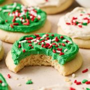 Christmas Lofthouse Cookies are the cutest cookies you’ll make this holiday season! My Copycat Lofthouse Cookies are soft, fluffy, and slightly cakey – and taste SO much better than the storebought variety. Quick and easy recipe made with simple ingredients.