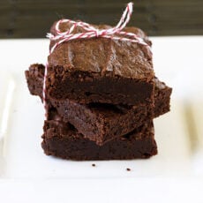 Brownies have always been one of my all time favorite desserts. I especially love chocolate-y, gooey, and chewy brownies with a lovely crinkly crust. But I hate brownies that are overly sweet, cakey, or artificial tasting. I’ve tested quite a few brownie recipes and for a while the Baked brownie was my favorite. But that recipe requires a little work and a lot of chocolate. Actually, most homemade brownie recipes require either expensive chocolate, or that your butter be a room temperature (who wants to wait for that?) or require you to use multiple bowls and tools before you’ve got your batter in the pan. Not these cocoa brownies. No expensive blocks of chocolate, just cocoa. And only one bowl. These brownies are so easy and cheap to bake which makes them a wonderful holiday gift.