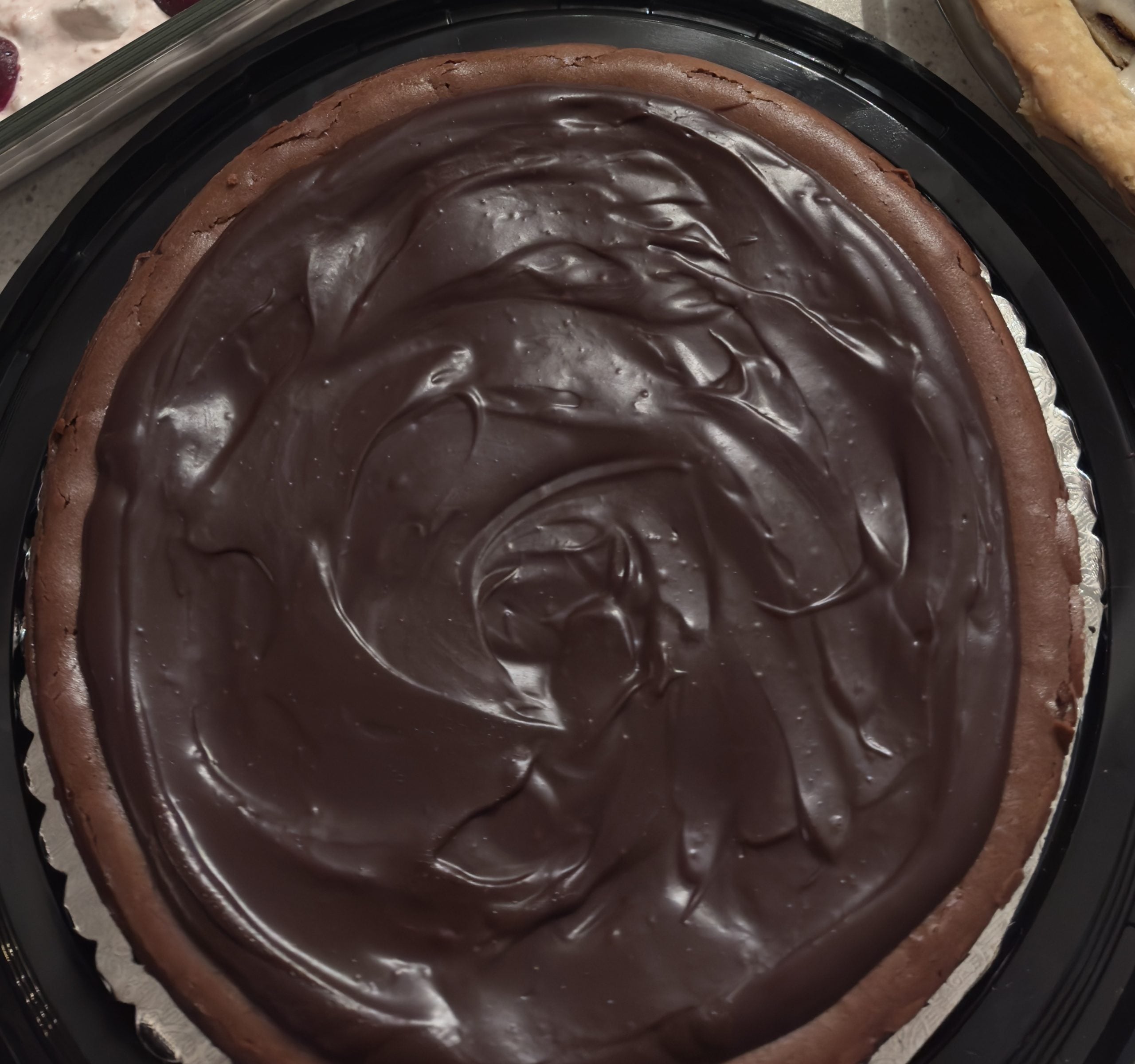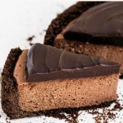 There’s chocolate in four forms: chocolate graham cracker crust, double chocolate filling (both cocoa powder and melted chocolate), and a chocolate ganache topping.