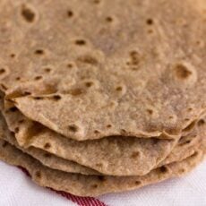 You might also want to thank our ancestors who first utilized spelt as a flour. Although tortillas have been traditionally made with maize, spelt makes these tortillas a health food. Spelt flour is easier to digest than wheat and is a fabulous source of fiber, protein, vitamin B12 and also of manganese, niacin, thiamin, and copper. Spelt actually has four times the fiber of whole wheat flour. It also has a lovely mild, sweet, nutty flavor and can be used in place of wheat flour in many recipes. It can be found at natural food and health food stores such as Whole Foods or wherever you buy your grains in bulk.
