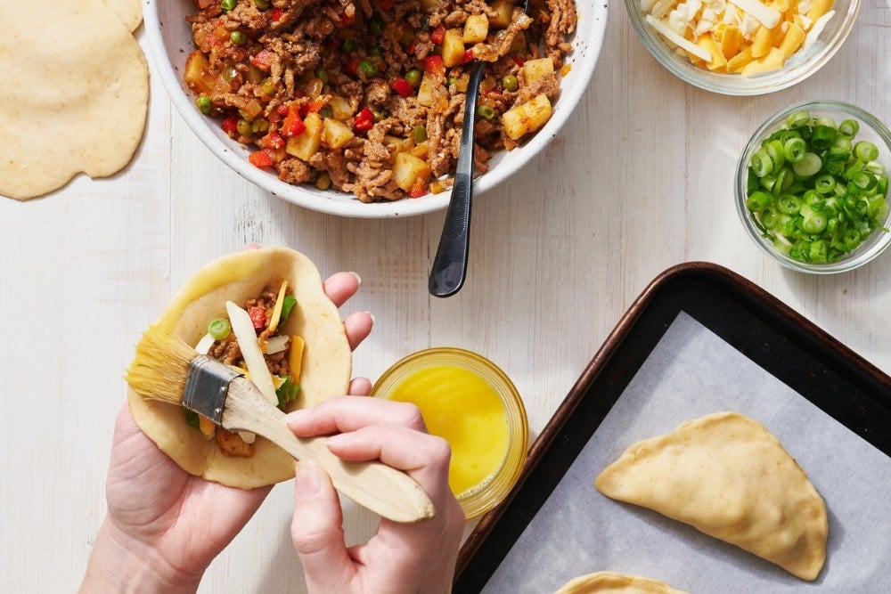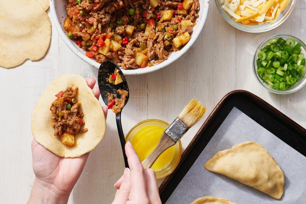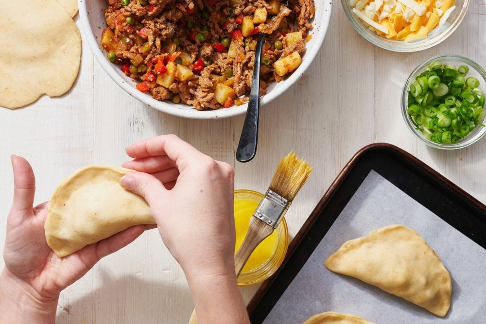 This is definitely the most time-consuming part of making empanadas, so get your friends and family involved in the process to make it fun and fast!