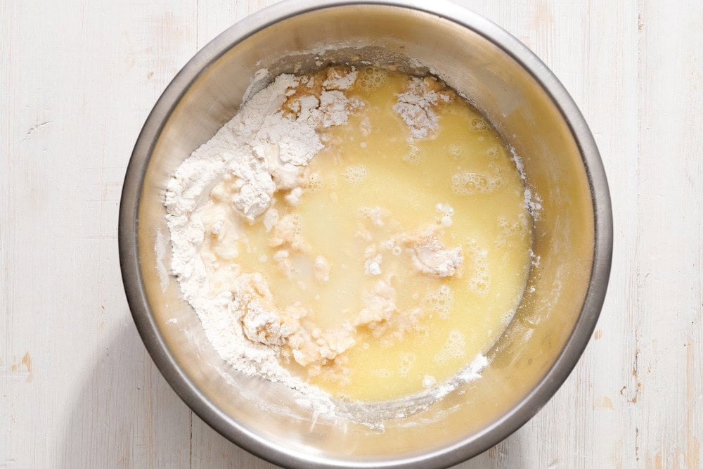 Pour in remaining butter mixture.