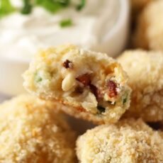 That’s why I’m sharing this recipe for Loaded Leftover Mashed Potato Balls with you today. Thanksgiving leftovers are usually pretty damn awesome, I have to admit to that. However, sometimes you get sick of eating the same thing over and over. Especially if you’re one of those people who has multiple Thanksgiving celebrations (with different parts of your family or for Friendsgiving). What I love most about these potato balls is not just that they might even be better than mashed potatoes, but that they’re baked instead of fried. Leftovers for the win!