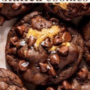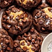 Sometimes recipe ideas come to me in a daydream. I was working on my Double Chocolate Chip Cookie Recipe and caught a glimpse of my Nutella Stuffed Peanut Butter Cookies. You can quickly see where my mind went.