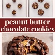 To freeze, place the pre-portioned, already-chilled scoops of cookie dough in an airtight container and freeze for up to 1 month. Bake from frozen at 380°F for 10 minutes, remove the pan from the oven and bang on the counter a few times, then put back in the oven for an additional minute. This will help the cookies to spread appropriately and showcase the peanut butter interior.