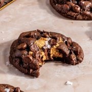 - To avoid dry cookies, weigh your cocoa powder (and flour!) if possible. If not, spoon and level the cocoa into your measuring cup to avoid compacting too much extra cocoa, which will dry out your cookies.