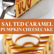 Perfect to make a day or two ahead of time, this delicious Salted Caramel Pumpkin Cheesecake is the best Thanksgiving dessert ever.