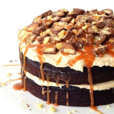 Once you have eaten half the frosting, oops I mean frosted the cake, you can then pile it high with all your favourite things. Be sure to pick up a few extra Twix bars so you can nibble on them as you decorate (that’s not just me is it?). I seriously LOVED this cake. I went back for seconds and had to demonstrate serious restraint not to go back for thirds. Moderation right? I’m dubbing it the perfect chocolate cake. Growing up, I only ever wanted chocolate cakes for my birthday and even though now I am partial to ice cream cakes, I think this one will go straight to the top of my birthday wish list.