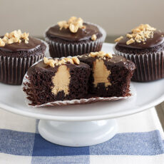 Peanut Butter Stuffed Devil’s Food Cupcakes are just like a Reese’s candy bar but in delicious, adorable cupcake form.